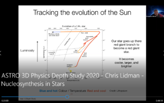 In June 2020, ASTRO 3D delivered an online Depth Study. Over a day, students listened to presentations from four astronomers covering topics on the nature of light, nucleosynthesis in stars, oxygen in the Universe, and spinning galaxies.