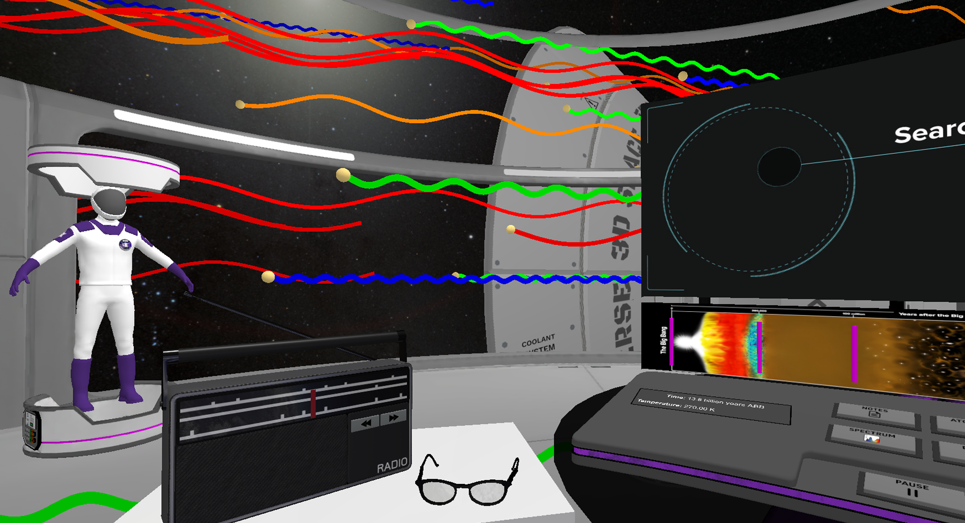 Unlocking the Universe in 3D is more than just a learning tool - it's a chance to experience science in a whole new way. Led by astronomer avatar Dr Kirsten Banks on the Universe 3D Space Telescope, students work scientifically by exploring and interacting with parts of the Universe in a virtual environment. It promotes independent and embodied learning through the visualisation and manipulation of objects at both atomic and astronomical levels. Students complete research tasks including measuring sub-atomic particles, building the first atoms, analysing spectra, and measuring radio waves and the Cosmic Microwave Background.